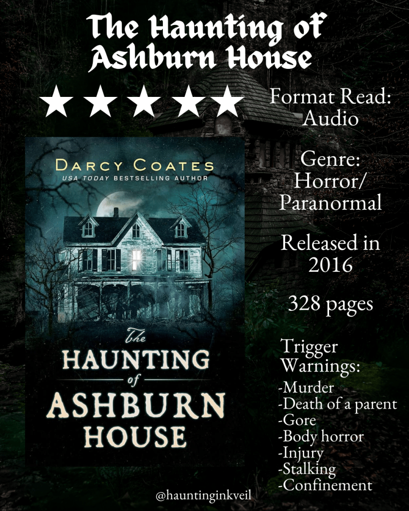 This was the first Darcy Coates book that I ever read. I listened to it on audiobook and it was really fun. It’s a very cozy haunted read but listening to it I even got jump scared. Hearing the clicking sound was very eerie and definitely added to the experience of the story. I thought the story itself was really interesting but I love a good creepy found grave behind a house. Wolfgang is the best boy, the MVP and deserves everything in the world. The description of the supernatural creature is terrifying and I would not want to face that. I couldn’t put this book down and recommend it if you want a cozy haunted story.