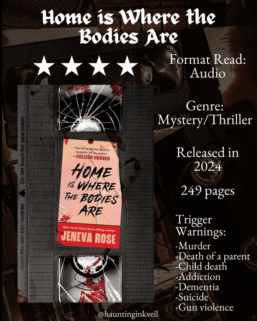 I really enjoyed this book and finished it in two or three days. I couldn’t stop reading; I just needed to know everything that happened. Early on, I was pretty sus about who I thought the killer was, and I was right. It was fun to see the truth be revealed and how they got there. Throughout this book, we not only get different perspectives but also many flashback scenes to the 90’s. Hearing from the perspectives of the different siblings helped me to understand them better and where they were coming from. One sibling had a very specific view of another sibling, which was, of course, very biased. Getting to see from that other sibling’s POV, you get to see what is actually true, which you don’t get if you are only seeing the perspective of one character the whole story. This had a satisfying ending and actually getting justice, which hardly happens a lot in stories like this. I definitely recommend it if you are looking for a fun read.